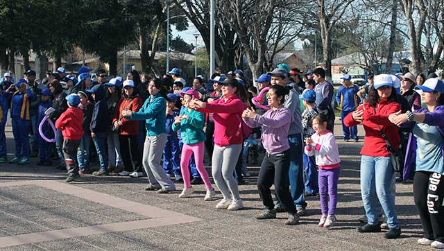 Durante el trayecto, los participantes se entretuvieron con las muestras de globoflexia de un mimo y al llegar a destino participaron de una animada sesión de baile entretenido encabezada por jóvenes de Tres Esquinas de Cato.